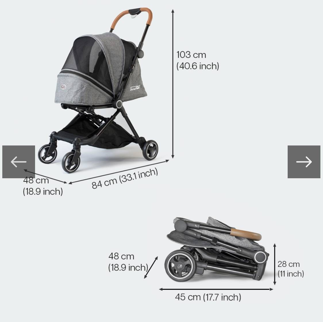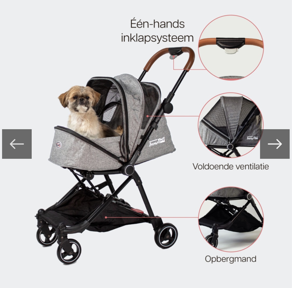 Kleinste buggy van Innopet Vouwt zeer compact Één-hands inklapsysteem Kunstlederen duwstang Duwstang niet in hoogte verstelbaar