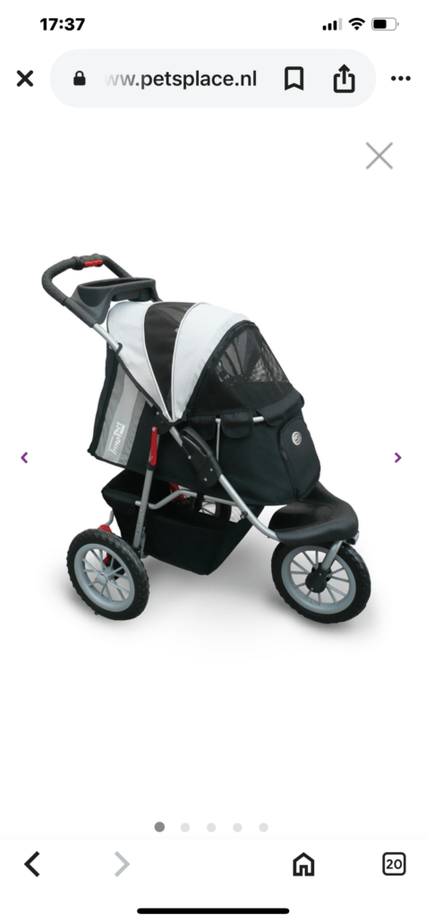 Super mooie en fijne hondenbuggy van innopet. Er kan tot 25 a 30 kg belast worden.