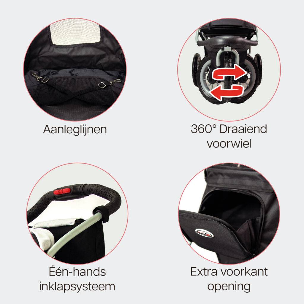 Deze buggy heet niet voor niets “Comfort” kijkt u mee naar de hieronder weergegeven features: